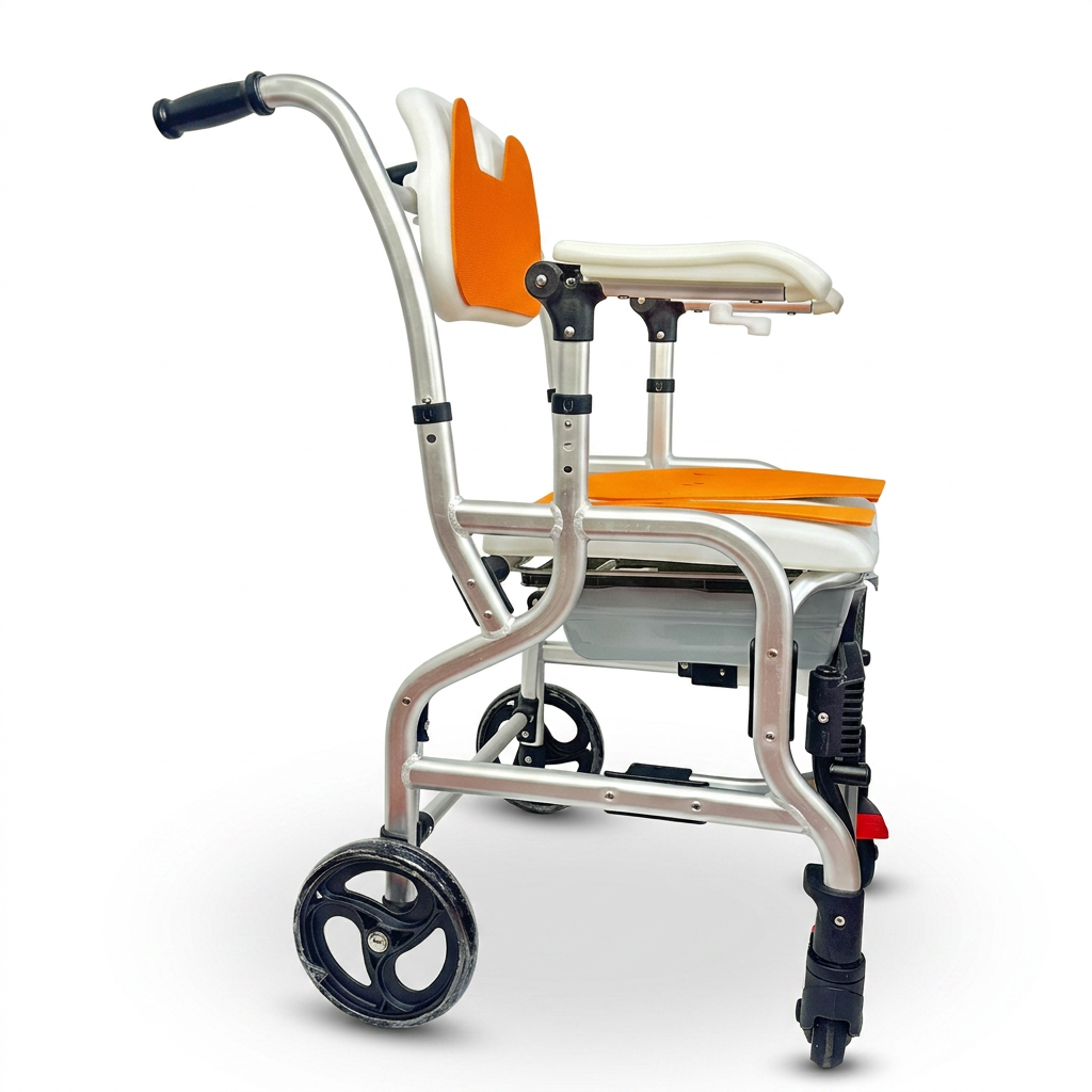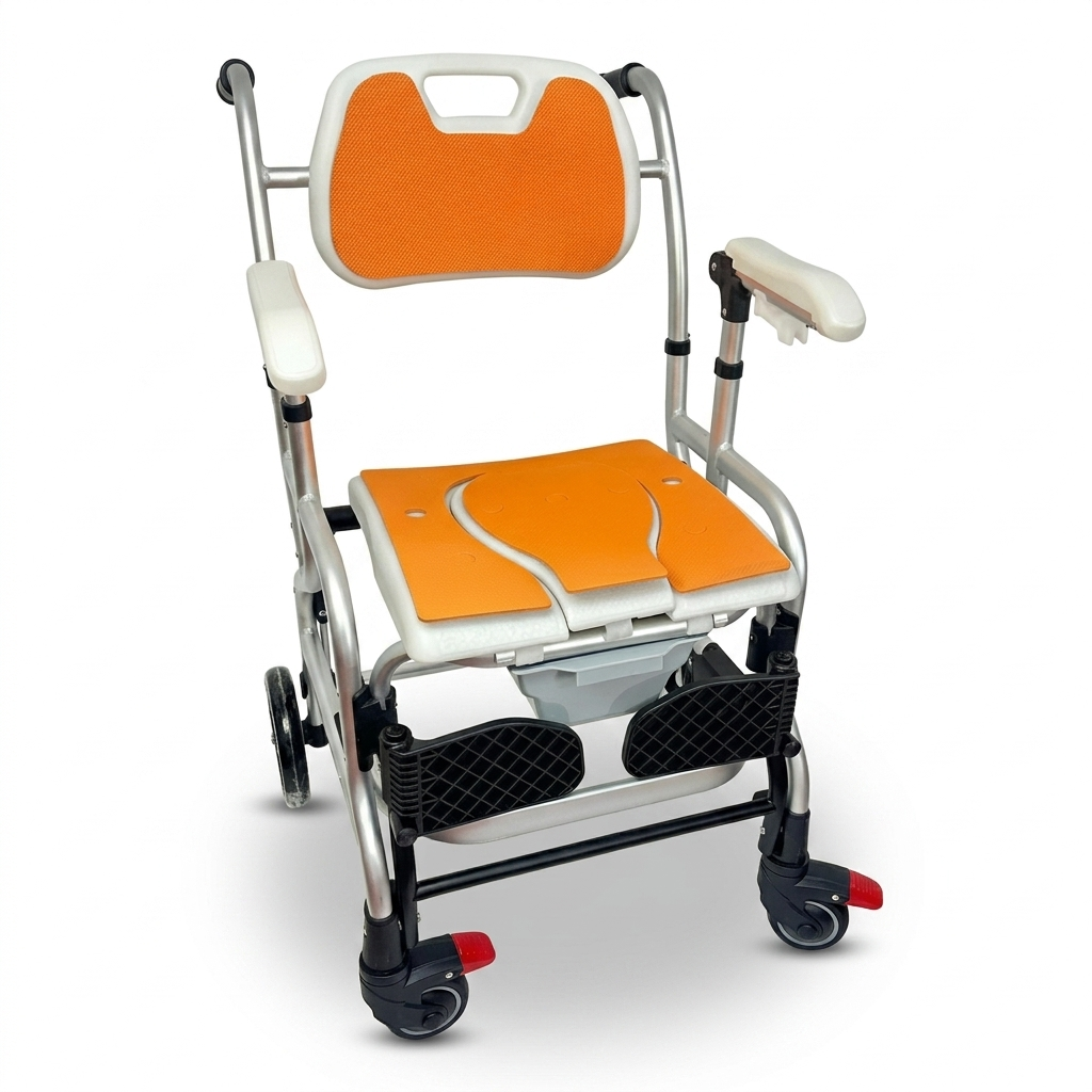 אם חיפשת כיסא רחצה ושירותים על גלגלים עם בלמים, רגליות מתפרקות, דלי קומודה ותמיכה מלאה –