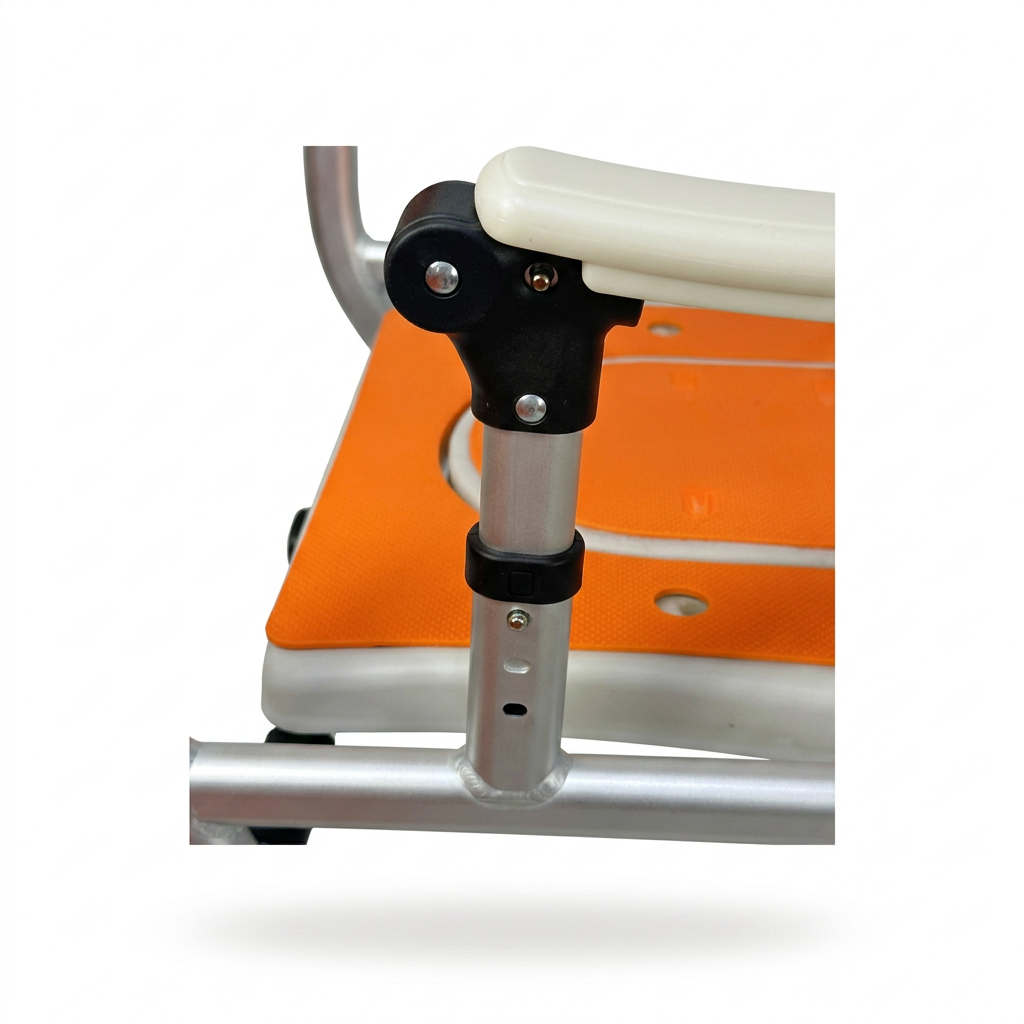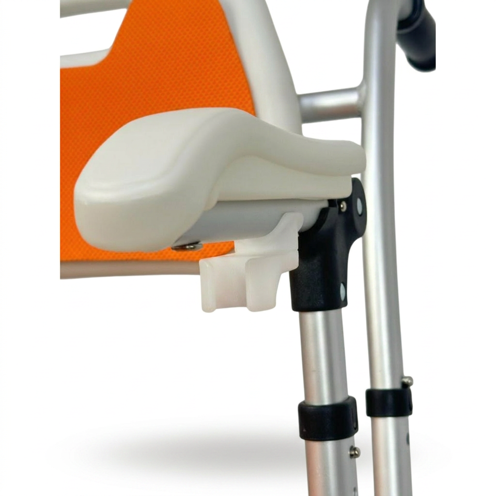 פתח גדול המאפשר גם נגישות לניקוי אישי בזמן הרחצה וגם שימוש נקי כקומודה – ללא צורך בתמרונים. - מבנה אלומיניום אנודייז – עמיד לסביבה רטובה: