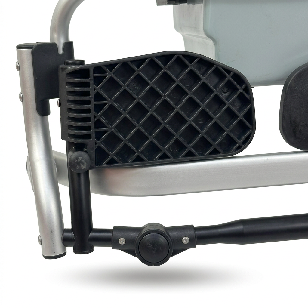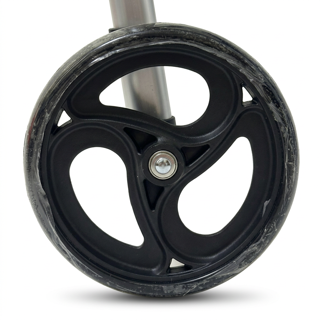 גלגלים בקוטר רחב המאפשרים תמרון חלק על מרצפות רטובות, ובלמים עצמאיים על כל אחד מהגלגלים האחוריים לנעילה מוחלטת בזמן הישיבה והקימה. - רגליות מתפרקות ומתכווננות: