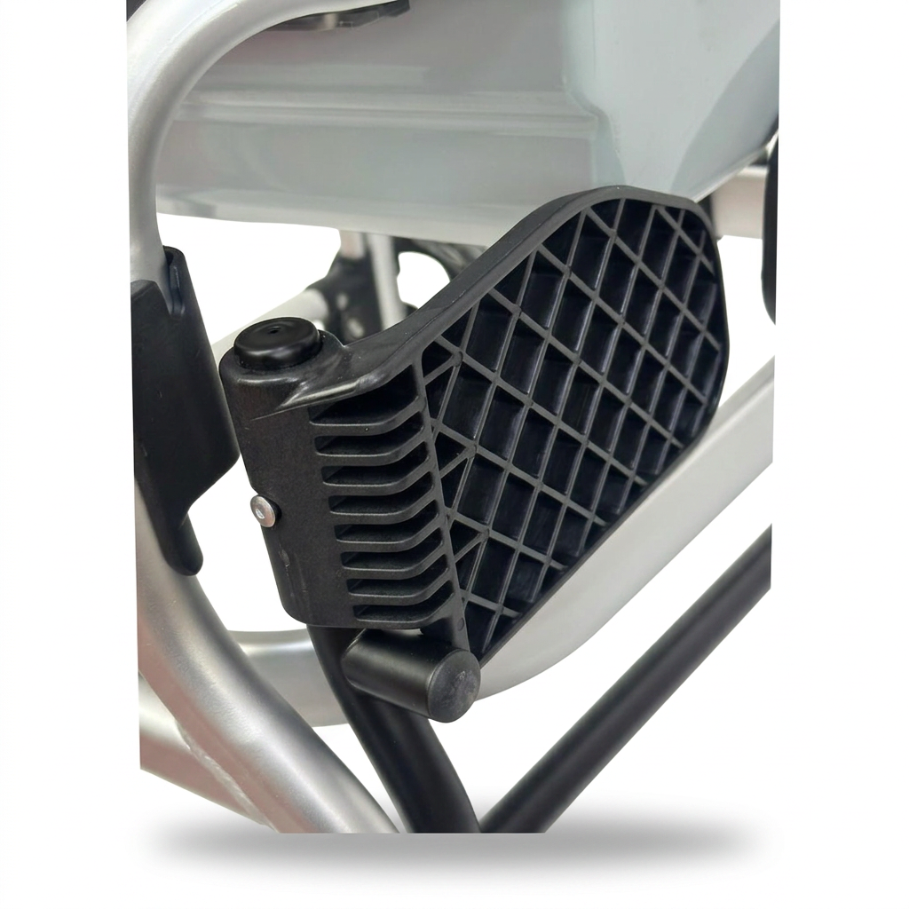 רגליות עם תמיכת כף רגל שמתקפלות הצידה או נשלפות לחלוטין – מקלות על העברה (Transfer) מהמיטה, ומעניקות תמיכה בזמן הגלגול. - דלי קומודה עם מכסה וידית: