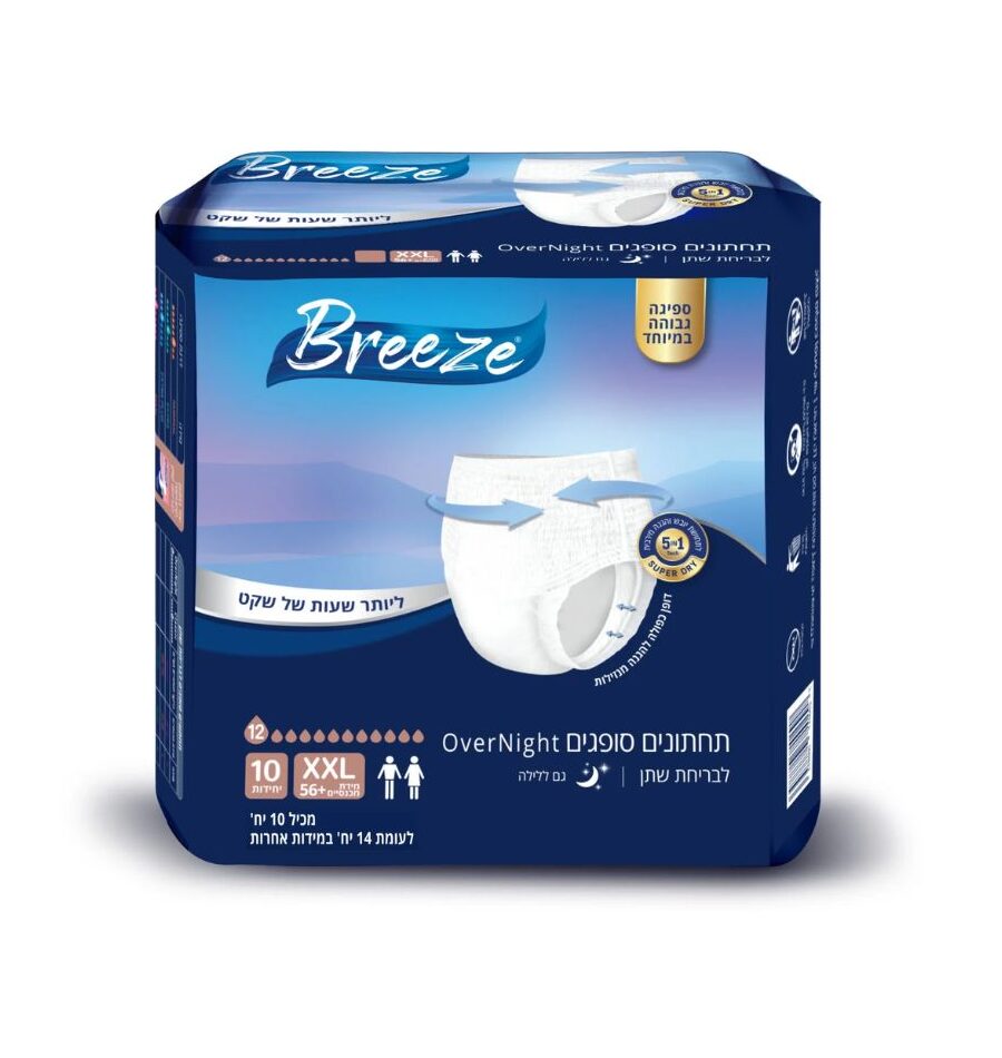Breeze Over Night | תחתוני ספיגה מידה XXL | בריז אוברנייט מידה אקסטרה אקסטרה לארג