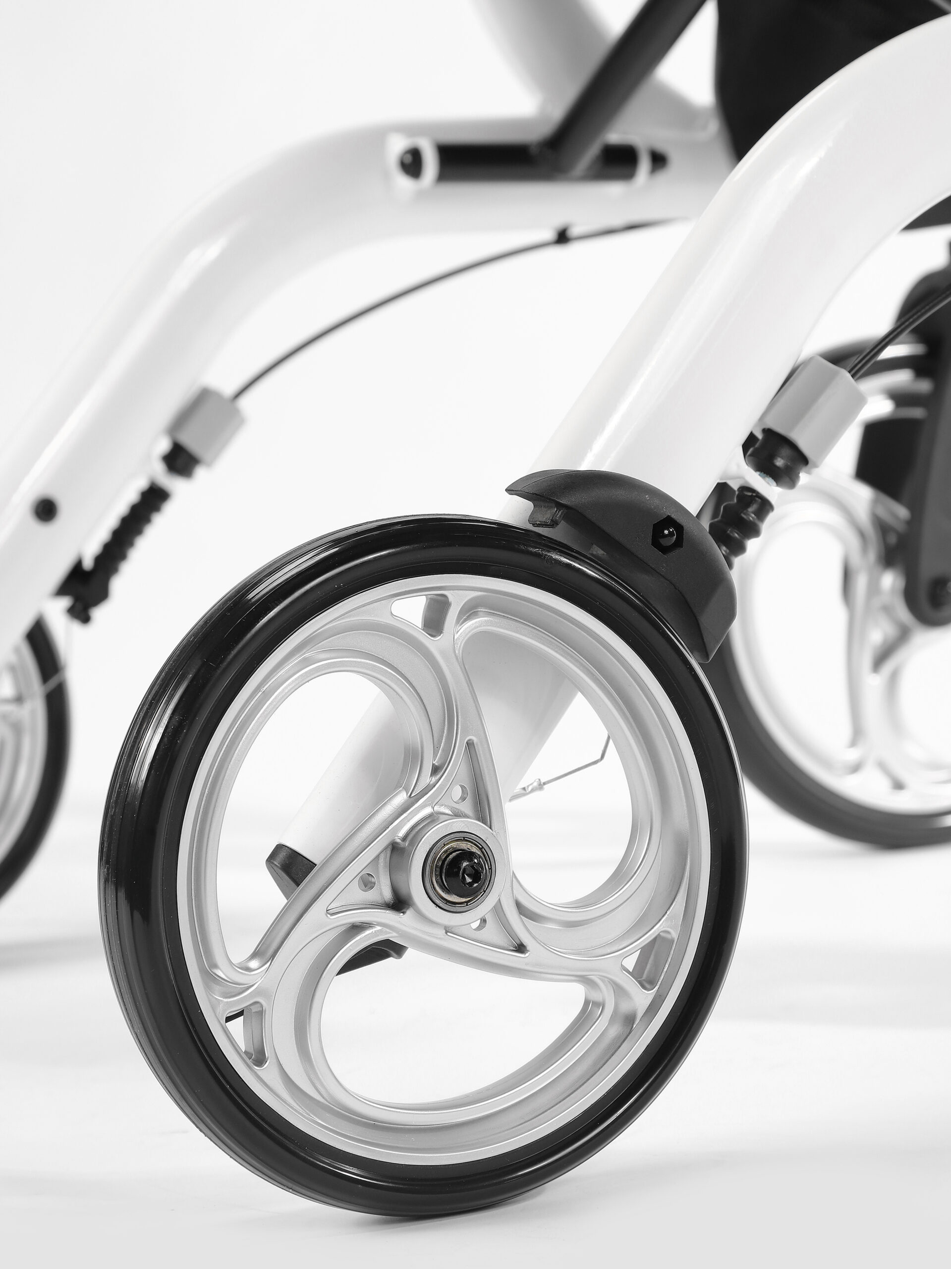 - גלגלים גדולים: גלגלים קדמיים בקוטר 10 אינץ' המאפשרים תמרון חלק וסיבוב יציב, יחד עם גלגלים אחוריים בקוטר 8 אינץ'.