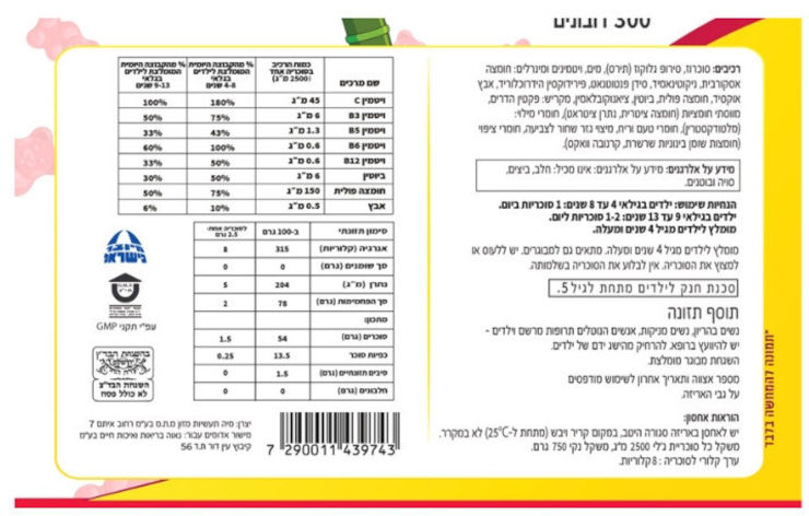 - מכיל ויטמינים ומינרלים מגוונים המותאמים לצרכים של ילדים בגילאי גדילה.
