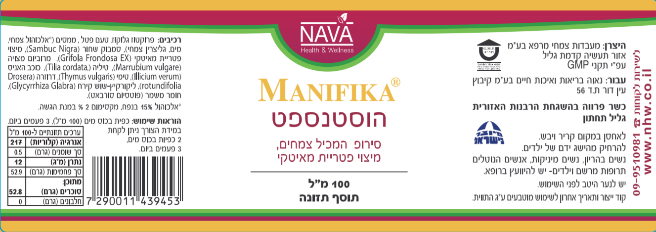 מניפיקה הוסטנספט 100 מ"ל הוא תמצית טבעית המבוססת על מיצוי פטריית מאייטקי וצמחים נוספים. המוצר מתאים לשימוש במקרים של קשיי נשימה ותסמיני שיעול, תוך שימוש במרכיבים טבעיים ובטוחים.