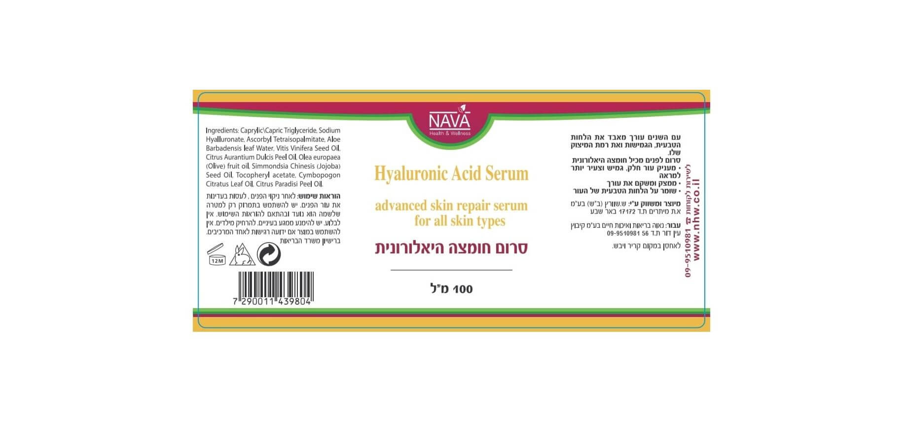 סרום חומצה היאלורונית בנפח 100 מ"ל מעשיר את העור בלחות עמוקה ומשפר את אלסטיותו. מיוצר בישראל, הסרום מכיל שילוב של שמנים אתריים לטיפוח מיטבי ורענון העור. מתאים לשימוש יומיומי ולכל סוגי העור.