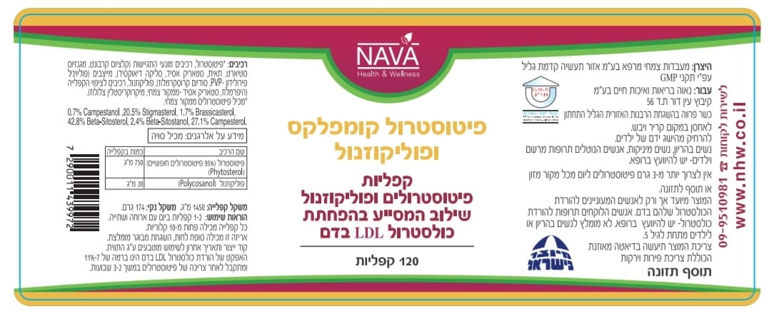- שם המוצר: פיטוסטרול ופוליקוזנול 120 קפליות