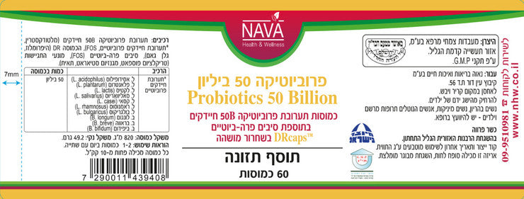 תיאור מוצר: פרוביוטיקה 50 ביליון פרווה (60 כמוסות)