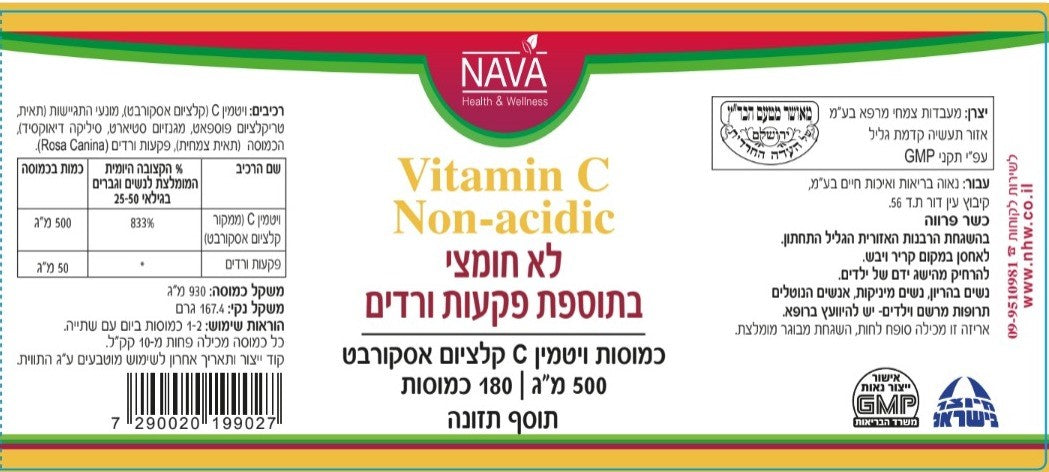 - סוג הוויטמין: ויטמין C (קלציום אסקורבט)