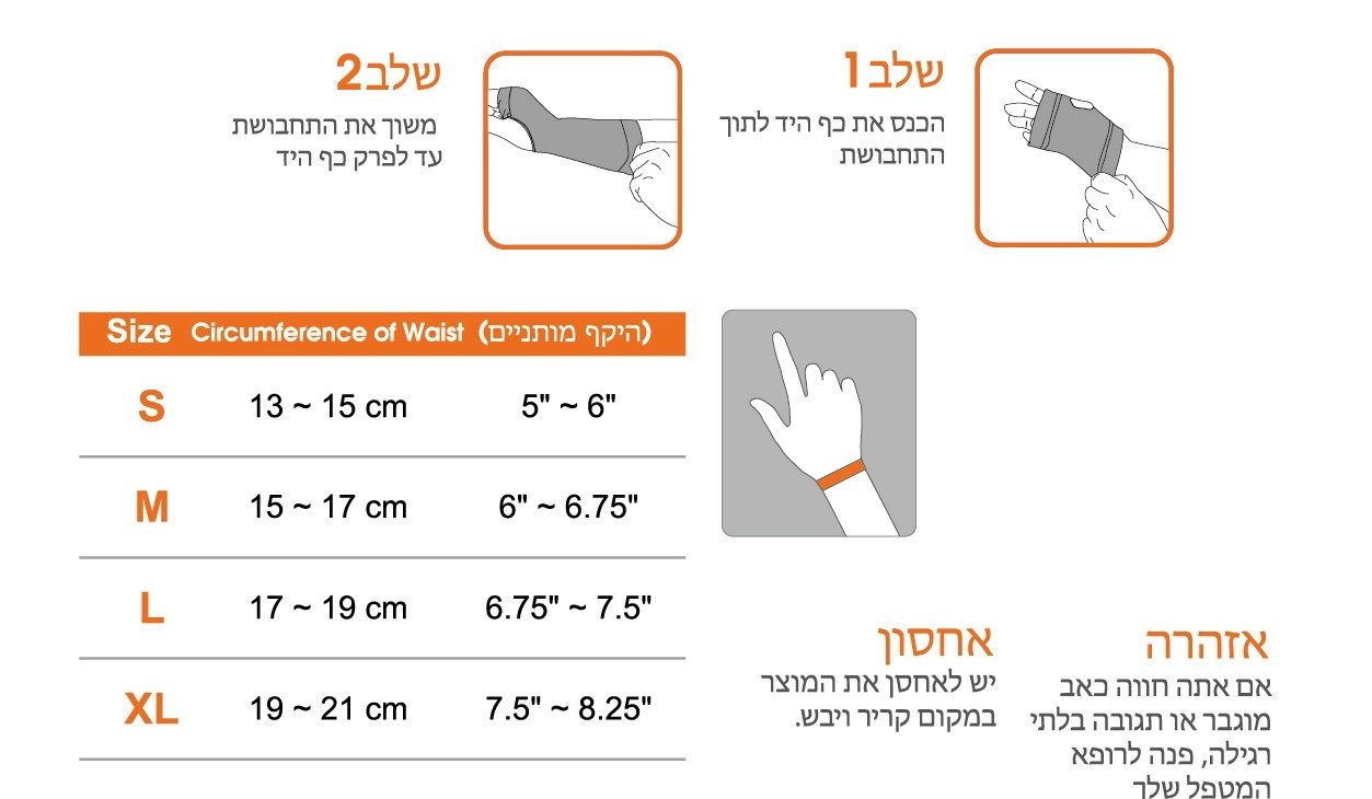 • להתאים את מידת ההידוק כך שתהיה תמיכה מבלי לגרום ללחץ מוגזם.