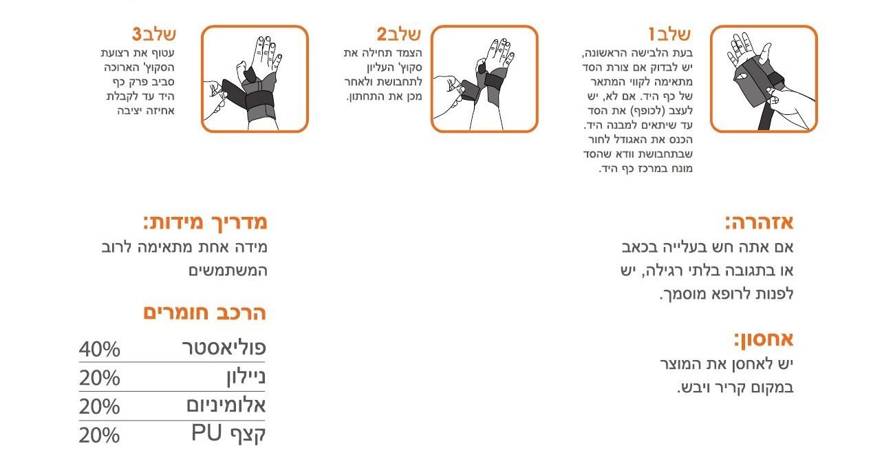 הסד מעוצב בצורה ארגונומית להתאמה מושלמת לכף היד, עם רצועות התאמה המאפשרות שליטה ברמת התמיכה ובנוחות. החומרים הקשיחים והעמידים מבטיחים יציבות מקסימלית למפרק תוך שמירה על נוחות למשתמש.